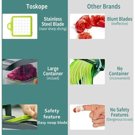 [Multifunctional and practical] The knives are equipped with 6 interchangeable blades, which can meet your needs. your different cooking needs. It is a quick and efficient kitchen helper that can save cooking time[High quality material] Vegetable size is made of stainless steel and high quality ABS quality, BPA-free, non-toxic and tasteless, and is a must for families to provide healthy meals[Easy to clean clean] All parts of the vegetable mandolin can be easily removed and can be rinsed directly under water. The cleaning fork can help you clean up. clean your hands more easily and easily. avoid scratching your hands.[Safety] There are two anti-slip lines at the bottom of the safety container. stainless steel mandolin, which can be easily fixed on the kitchen table to help you save time and effort. It is equipped with a box to store the blades. The blades must be placed safely when not in use.[Quality Service] If there is any quality problem, with the mandolin within 30 days, please contact us by email at; time to provide you with free return, replacement and modification services.