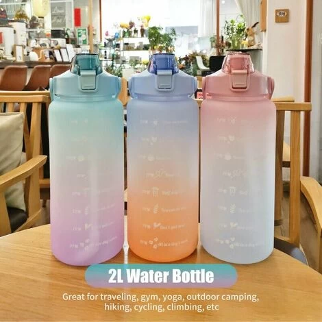 Description: The 2L large capacity water bottle can ensure and inspire you to drink enough water every day to meet your normal one-day water needs. The large capacity water bottle is ideal for travel, gym, yoga, outdoor camping, hiking, biking, climbing, snowboarding, skiing and surfing.Features: [With Straw ] Soft straw top for comfortable use. The built-in straw allows you to drink without leaking. [One-button operation] Open this portable water bottle with just one click and start drinking. [Convenient handle] Water bottle with durable handle, thanks to With easy one-handed operation, you also have a free hand. [Large Capacity] 2L large capacity allows you to enjoy a full water jug without having to refill it frequently. [Excellent Gift] This excellent bottle is the best gift idea for yourself, friends, family members, colleagues, women and men who love a healthy lifestyle.Specifications: Purple color; Pink; Green; Blue (optional) Material: plastic Capacity: 2L Style: modern Application: water, drink Occasion: kitchen, hotel, travel, camping, gym, etc. Package size: 32 x 11 x 11cm. Package weight: 500g. List of 1.1 lb packages: < br/> 1 * water bottle