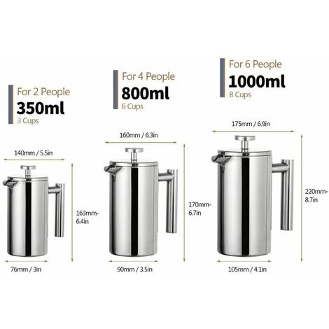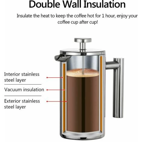 Made of 304 stainless steel, rust-proof, odorless and healthy. Double wall insulation keeps coffee hot for 1 hour. The fine mesh filter produces exceptional flavors. The ergonomic handle stays cool and won’t burn your hands. U-shaped spout allows for easy pouring to reduce spills and drips. The perfect choice for home and office. />