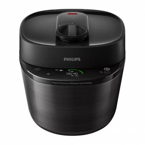 Cook a variety of delicious meals in as little as 30 minutes.Leave all of the hassle involved in food preparation to the new Philips all-in-one cooker! Maximum taste, minimal effort.RAPID PRESSURE RELEASE TECHNOLOGYThe innovative pressure release technology delivers automatic pressure release in as little as 7 minutes: compared to stove-top cooking, that’s 50% faster*.”TASTE CONTROL” SYSTEMGet tastier results with the help of the new Taste Control system: precise pressure and temperature control increases meat tenderness by 22%** and juiciness by 42%**.LOTS OF OPTIONS FOR A VARIETY OF FLAVOURSPressure cooking or slow cooking, sautéing or steam cooking… Enjoy over 35 pre-set menu options available at the touch of a button.STEP-BY-STEP GUIDANCE FOR EFFORTLESS COOKINGThanks to the convenient user interface with step-by-step guidance, food preparation is now even easier.TAKE ADVANTAGE OF THE “NUTRIU” APPThe dedicated NutriU app provides meal prep inspiration and offers tons of amazing everyday recipes***.”CHILD LOCK” SYSTEM FOR MAXIMUM SECURITYThe built-in Child Lock system lets you go about your food preparation even while your kids are running around.ADD INGREDIENTS WHILE COOKINGWhether you want to add some extra ingredients for more flavour or you’ve accidentally skipped one step in your recipe, you can always press the dedicated “Add ingredients” button, add whatever you want to add, then stir. SAUCE THICKENING FOR BETTER TEXTURE AND TASTESelect the sauce thickening feature once pressure has been released: when activated, the high-powered boiling function will make your dishes thicker, richer and more flavourful.”MY FAVOURITES”: SAVE UP TO 3 CUSTOMISED COOKING PROGRAMSTake advantage of the “My Favourites” feature and have your favourite dishes ready with a single touch.AUTOMATIC PRESSURE RELEASEOnce you’re done cooking, pressure is released automatically, so there’s no need for you to do it manually or wait for the pressure to go down by itself. ADJUSTABLE COOKING DURATION AND PRESSURESet your own cooking duration and pressure level: now you can truly enjoy pretty much any dish at home. PRE-SET TIMER AND KEEP-WARM FUNCTIONWith the 24-hour adjustable timer and 12-hour automatic keep-warm function, your dishes will always be ready for you to enjoy. * Beef cooked in 30 minutes (from heat-up to all pressure released), compared with 60 minutes using a stove-top cooker.** Compared to Philips “All-in-One 3000” and stove-top cooking.*** Only in markets with the NutriU app.