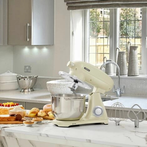 【Quick and convenient anti-slip design】The AREBOS food mixer includes several accessories: whisk, dough hook, and beater. The built-in blue LED light indicates the 6 different speed settings, such as for whisking eggs, kneading dough and many more functions. 4 anti-slip feet ensure quiet and secure footing during operation.