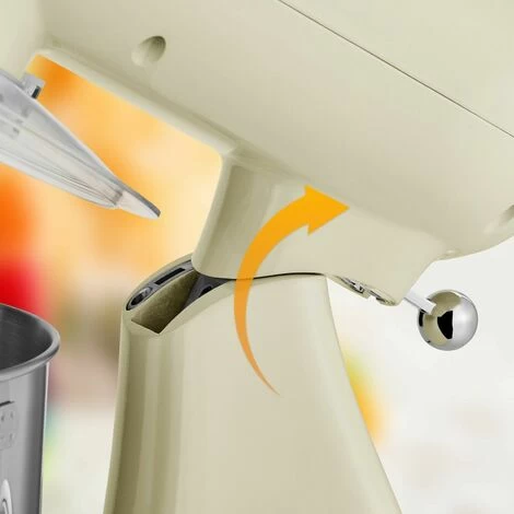 The tilting stirring head design allows for easy assembly and disassembly of hook, beater and whisk. On top of that, our allrounder features a splash guard with inlet for clean cooking/ baking.