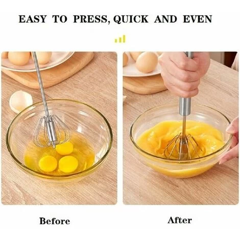 1.Semi-Automatic Whisk: The stainless steel semi-automatic whisk with automatic rotation is a marvel design in the kitchen. It saves effort and gets the job done much faster than a regular non-electric whisk. still battery. Simply squeeze the handle and the whisk’s stainless steel blades spin, no more turning your wrist! The ergonomic handle provides a secure and comfortable grip for any mixing task.