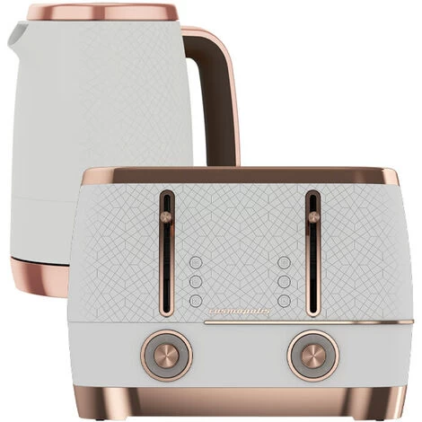 Part of the stylish Beko Cosmopolis breakfast range, this Beko Cosmopolis Kettle & Toaster Set in Off White & Rose Gold features the matching 1.7 litre kettle and 4 slice toaster.
