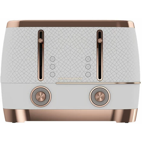 The Cosmopolis 4 Slice Toaster boasts a number of features including extra wide slots and 5 x browning settings. Complete with defrost function for toasting bread straight out of the freezer in minutes, this stylish toaster also has a reheat function. Bagels, waffles and thick cut bread can all be used in this toaster.