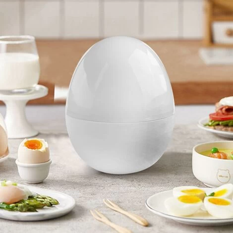 1. Egg Boiler, Egg Boiler Only 8 Minutes for Hard or Soft Boiled Eggs, No Piercing Required, Dishwasher Safe, Egg Boiler for 4 Eggs (White)2. Easy to use: the egg cooker for the safe storage of 4 perfectly hard or soft-boiled eggs with internal shelf. This hard boiled egg cooker is easy to use and fast.3. High Quality Material: Slim design, high quality, simple and quick operation.4. ADJUSTABLE: Make your perfectly boiled eggs, which can be soft and nutritious by boiling, 4-6 minutes for soft-to-medium boiled and up to 8 minutes for hard-boiled.5. Convenient and Safe: Egg-shaped and reasonable vent hole to prevent a button from falling out or exploding. Clean up with no fuss. You don’t have to worry about using them with pots and boiling water. No need for piercing.Color: WhiteMaterial: PP+AluminumSize: 13.5 x 14 x 15.5cmPackage Content: 1 x Egg SteamerOnly the above package content, others are not included. Note: Light and different displays may cause the item’s color a little different from the real thing. The allowed size is +/- 1-3cm.
