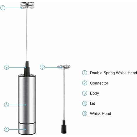 - 2 Whisks: With a double spring whisk head, more efficient for frothing a large cup of milk. The unique whisk head for frothing a small cup of milk. An excellent frother for making coffee.