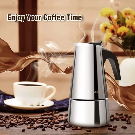【4 CUPS OF COFFEE 】The capacity of this pressure coffee maker gives you 4 cups of coffee with each use. Italian coffee maker will allow you to prepare delicious aroma-rich coffee very simply and share it with your family every morning.