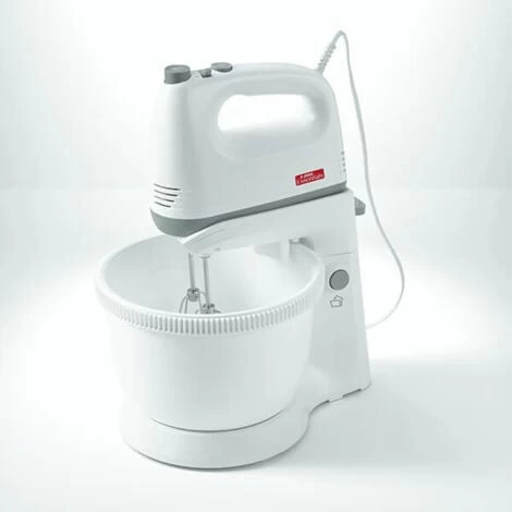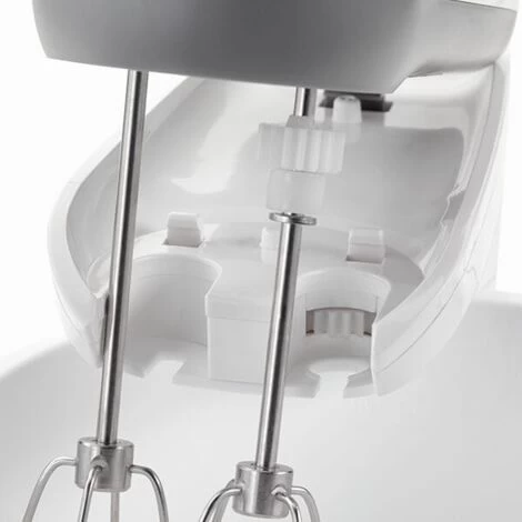 The hand mixer comes complete with a pair of stainless steel beaters and a pair of stainless steel dough hooks. The detachable bowl has a capacity of 1.5 litres of liquid, 750g of solid mix.