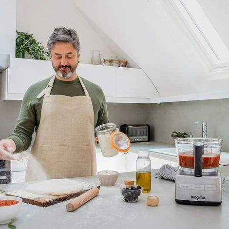 Ideal for families, the Magimix 3200XL Food Processor in red is perfect when catering for up to 4 people. The 3200XL food processor can knead 1 standard loaf (600g) or grate up to 800g of vegetables in the main bowl.