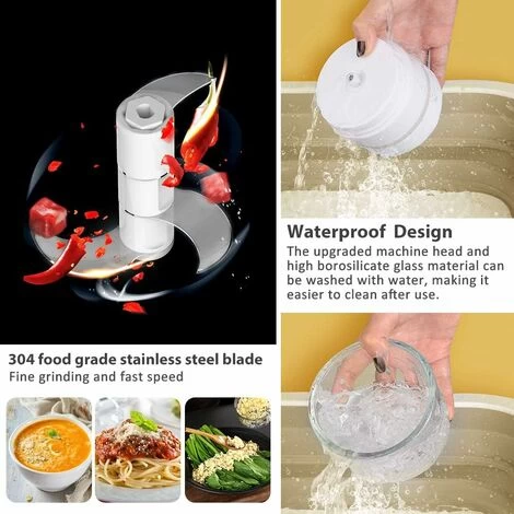 【Durable Glass Container】This mini electric garlic press adopts BPA-free material which is harmless to your family. Food grade 304 stainless steel blades of blender are more rust and corrosion resistant. The