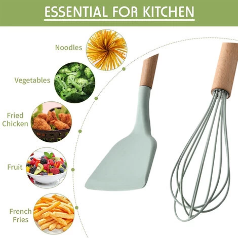 3. EASY CLEAN QUALITY WOODEN HANDLES – This quality silicone kitchen utensil set is easy to clean, just wipe under warm water. The high quality wooden handle won’t bend or rust and completely reduce heat transfer during cooking to prevent burning your hands. Convenient hanging hole design allows for easy storage using hooks or wall hangings. 4.2 silicone kitchen utensil set includes flexible spatulas, soup spoons, serving spoons, pasta dishes, spatulas, tongs, measuring cups and spoons and more. Meet your different kitchen needs, you don’t need to spend a lot of money to buy each utensil individually. If you have any questions about our cutlery sets, please do not hesitate to contact our customer service and we will be happy to help you!