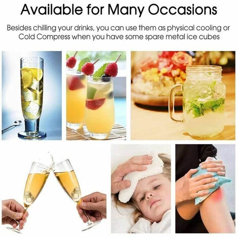 Product Description Package includes: 8 x 2.5 x 2.5 x 2.5 cm stainless steel cubes, 1 x stainless steel tongs, 1 x BPA-free freezer storage tray. Whiskey, Scotch whiskey, Japanese whiskey, Tennessee whiskey, rye or bourbon, liquors, white wine, coffee, juice, even all kinds of drinks. Will not dilute drinks, nor will it affect the flavor of the drink. most important use is correctly 2. 【USEFUL WHISKEY COOLING ROCKS】 – Easy to use, can put it directly in the refrigerator, or put it in our bag, then put it in the refrigerator. After 8 or 12 hours, put it in the refrigerator. the to drink.Also given their small size, it is not a long and difficult job to wash and rinse.Can be cleaned with warm water before use, ensure effective sterilization.Can also use detergent, then use water to clean.3.【PERFECT】- The elegant and luxurious appearance can make it a luxurious gift for your family and friends.Perfect gifts for most holidays like Birthday, Valentine’s Day, Birthday Father’s Day, Mother’s Day, Thanksgiving, Ha lloween, Christmas, New Year, etc. Can be used at home, in the office and at parties to enjoy a relaxing time. Also used for sprains on the body, bring down fever, can be applied cold and help reduce swelling. 4.【ICE WINE STONE】- Made of high quality 304 stainless steel. Safe for everyone, DO NOT SCRATCH THE GLASS or knock your teeth. Nicely packaged, comes with stainless steel tongs for easy use and a high quality velvet carry pouch.