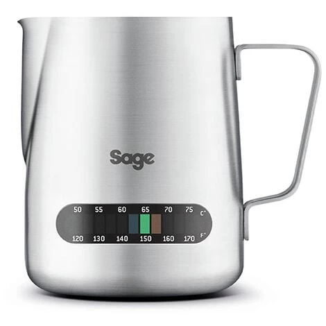 Sage The Temp Control Milk Jug – milk frothing jug with built in thermometer. Heat and froth milk to an exact temperature for your perfect milk based coffee including flat white, latte and cappuccino, or a rich smooth hot chocolate. Built in thermometer from 50°C to 75°C / 120°F to 170°F. Capacity: 480ml.