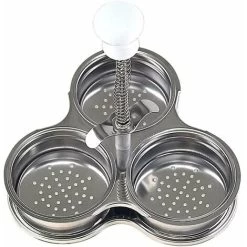 Crack an egg gently into each cup, cook until desired, then lift the poacher out of the pan. Pull the spring-loaded handle to release the eggs onto the plate, toast, or buns.