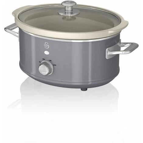 Benefiting from three settings, low, high and automatic, the Swan Retro 3.5L slow cooker has a removable ivory colour ceramic pot, which can be taken straight to the table for serving. The low setting gently simmers food, while the high setting is great for cooking beans or pulses, as well as baking winter dishes such as crumbles. The automatic setting starts a dish on the high setting, which can be used to brown meats, before switching to low for the remainder of the cooking time, perfect for stews. An included 32-page recipe book provides inspiration for creating a versatile menu of tasty meals, while the handy keep warm function will keep dishes at the ideal serving temperature.