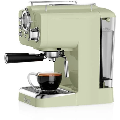 Enjoy barista quality coffee with the stylish retro inspired Swan Retro Green Pump Espresso Coffee Machine. Capable of making delicious espresso, cappuccino, flat white and other coffee favourites, this uber cool coffee machine is compatible with both ground coffee and easy serve espresso (ESE) pods.
