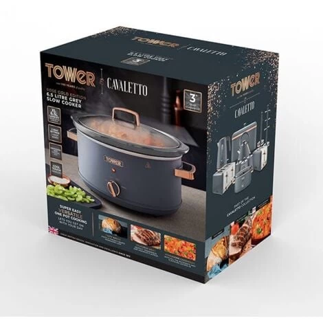Make deliciously healthy and cost-effective meals for the whole family with this Tower Cavaletto 6.5 Litre Slow Cooker. Finished in classic Cavaletto grey with rose gold accents, this slow cooker has three heat settings to choose from – low, high and keep warm – so you can cook a range of dishes, from stews, casseroles and curries to soups and bread, all ready when you get home in the evening.