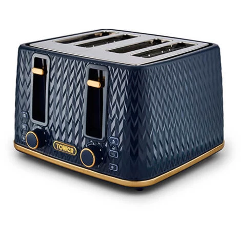 The Tower Empire 1.7 Litre Kettle and 4 Slice Toaster Set features a grey geometric design with brass accents will add a touch of style to your kitchen.