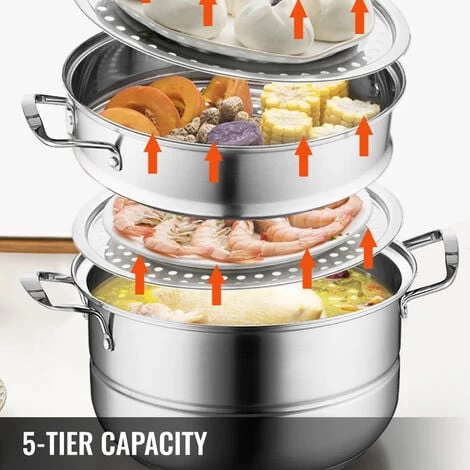 into five different pots (4-Tier/3-Tier/2-Tier/Single-Tier Steamer,