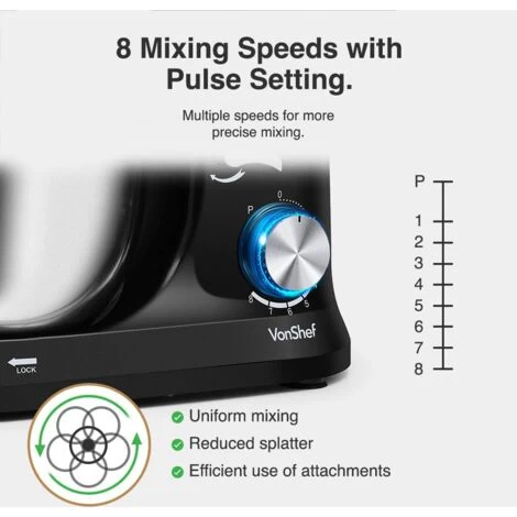 Ideal for new bakers and seasoned professionals, the VonShef Stand Mixer makes baking simple. Designed to be low on noise and high on power the impressive 1000W motor – makes lightwork of mixing, whisking and kneading.ÂÂ